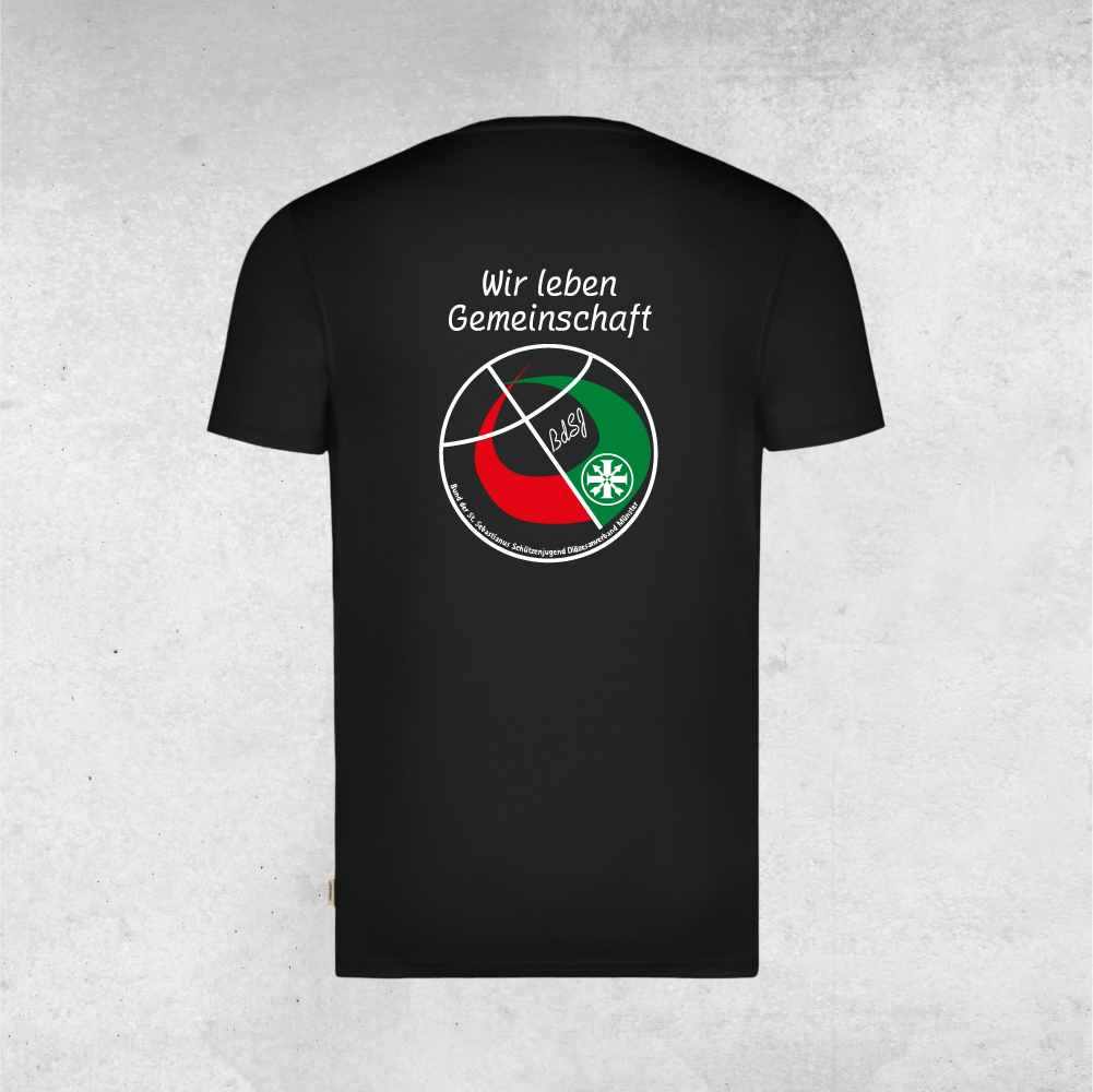 Vorne auf der Brust bedruckt mit dem Fahnenemblem des BdSJ und einem individuellen Namen.